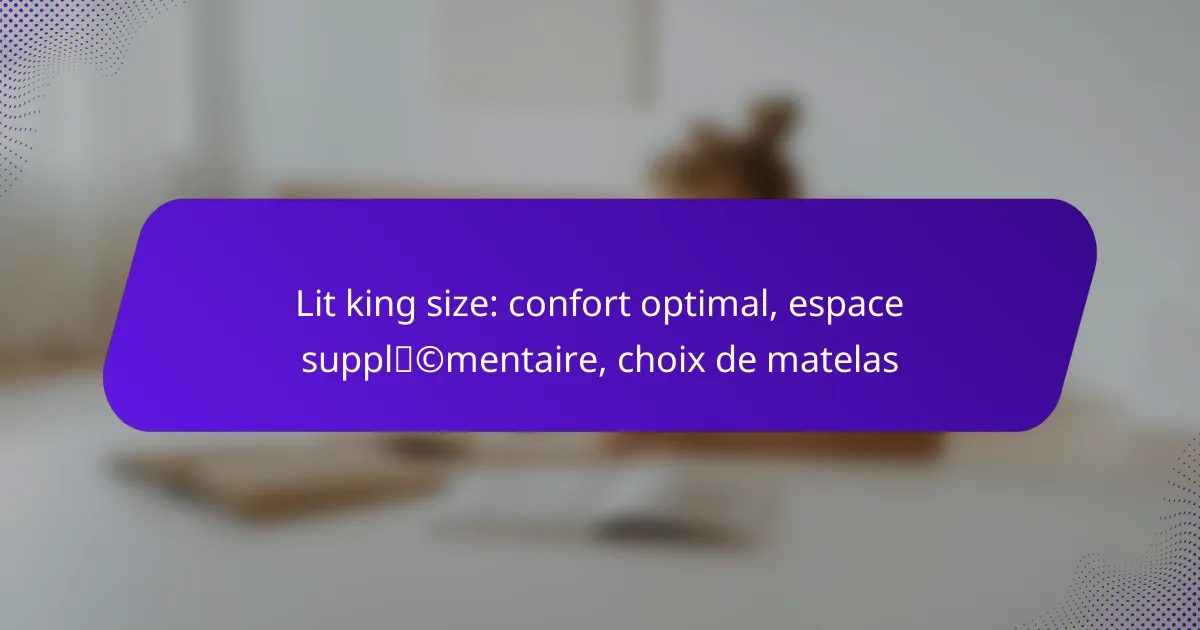 Les matelas compatibles avec un lit king size incluent principalement les matelas en mousse à mémoire de forme, les matelas en latex et les matelas à ressorts. Chacun de ces types offre des caractéristiques uniques en termes de soutien et de confort. Par exemple, les matelas en mousse à mémoire de forme épousent la forme du corps, tandis que les matelas à ressorts offrent une meilleure circulation de l’air.